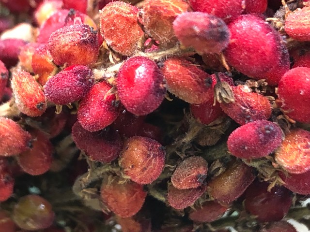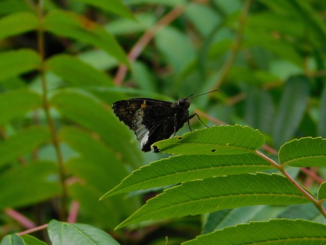 The beautiful dark skipper was resting on sumac, a shrub which can easily get out of control but is a beautiful plant. Today the seed heads where brilliant red; in the fall the leaves will be even redder.
