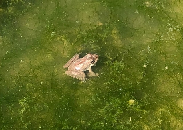 In one little roadside puddle, I spotted a young bullfrog with his head angled up out of the water, but he retreated before I could get out of the car and I didn’t dig through the caliche mud to try to find where he was hiding. The same little spot had several cricket frogs. We weren’t sure where these frogs will go when the puddle dries, but I’m confident they will find their way. We were just grateful that they provided a few sightings of herpetofauna while we were out.