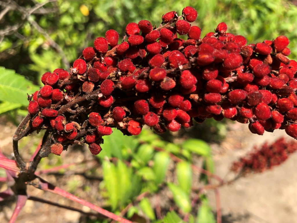 Sumac is common in places at the preserve, and their seed heads can be a bright, velvety red before drying and darkening into the color of dried blood. Rob Denkhaus tells me I could make a tea out of it, and I’d like to find some growing somewhere that I could harvest a seed head or two and try it!