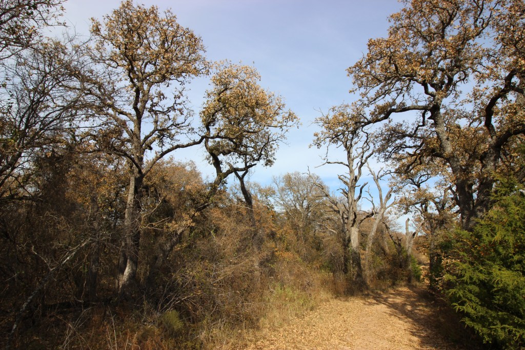 On a visit to the Lyndon B. Johnson National Grasslands in Wise County, we walked a long trail through straw- and rust-colored grasses and through the stands of oak trees that are the signature of the Western Cross Timbers. Sunny days like this in autumn are perfect for walking in the woods and prairies. The slanting sunlight and the colors of grasses and leaves (even when they are mostly shades of straw and brown) result in the landscape having a kind of warm glow, which seems like a comfortable complement to cool or even cold temperatures.