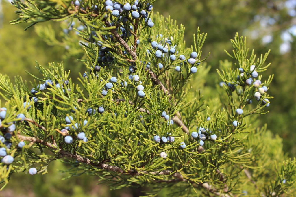 The berries, we are told, are really modified seed cones and not true berries at all. Sort of a blue, tasty variation on the pine cone theme. But it’s only a little taste; much of what lies under that blue coating is a seed, so there is not much to eat. Some junipers produce berries while others produce pollen. In winter, some of those male junipers take on a golden cast from all the pollen just waiting to be lifted by the breeze and carried to the female plant.