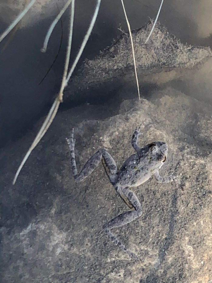 Closer to us, at the muddy margins of the marsh, we were amazed at the birds that kept popping up in front of us or down below the boardwalk. One species entirely new to Barbara and me was a sora, a secretive marsh bird that tends to stay among grasses and reeds looking for seeds and aquatic invertebrates to eat. There was also a swamp sparrow hopping around the water’s edge, and a common yellowthroat.