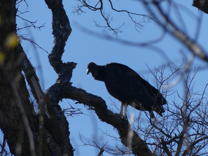 When the others arrived, we started our visit at Lone Point, the stone shell of a shelter built long ago by the Civilian Conservation Corps. It overlooks Lake Worth, and on this day it was a popular vantage point for more vultures. Below us on the water, and above us in the sky, there were American white pelicans with their black-edged wings and big pouched bills.