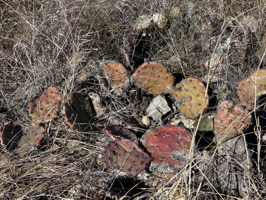 Somewhere along the way was a clump of prickly pear cactus, its pads weakly standing up to the winter and the lack of rainfall. But those pads were the loveliest shades of terra cotta and pale green shading into gold. Walking at the speed of botany brings so many beautiful things into view.