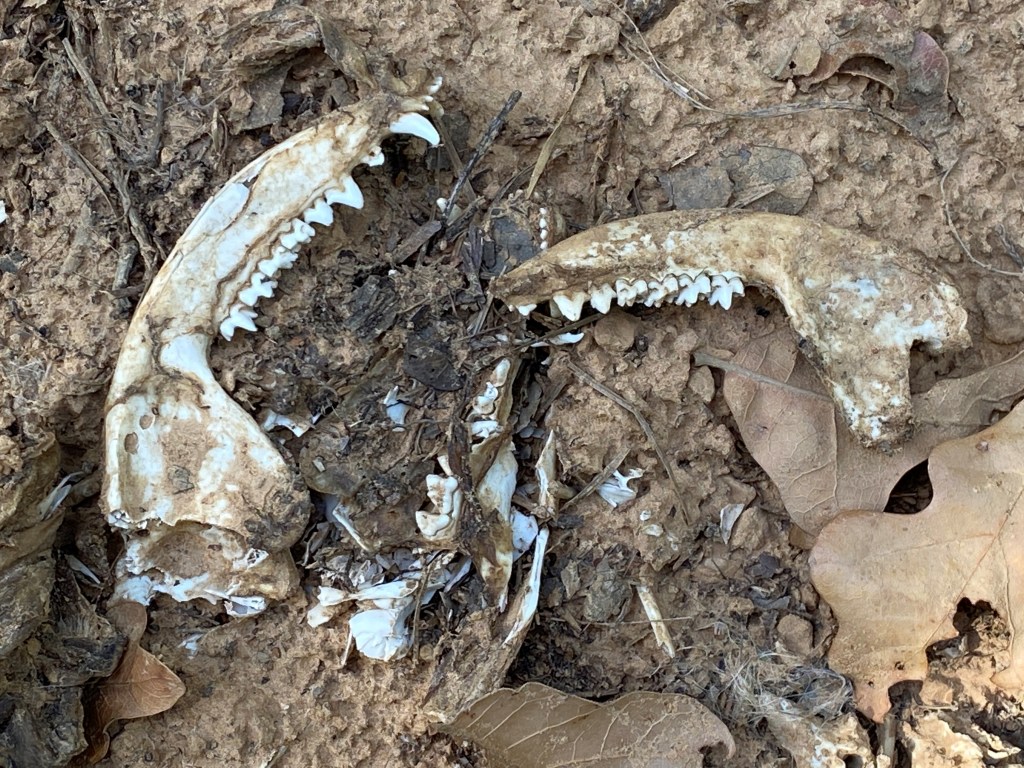 And we look at any part of you from another angle and we see the other part of life’s story. This time, it is life surrendered, either to feed another life or when an individual life runs its course. We discovered parts of a skeleton on the trail, including two nearly complete lower mandibles of some small mammal with the teeth of a predator. A part of you, living and hunting and contributing to new life for a time, and then feeding others after his or her own life ended.