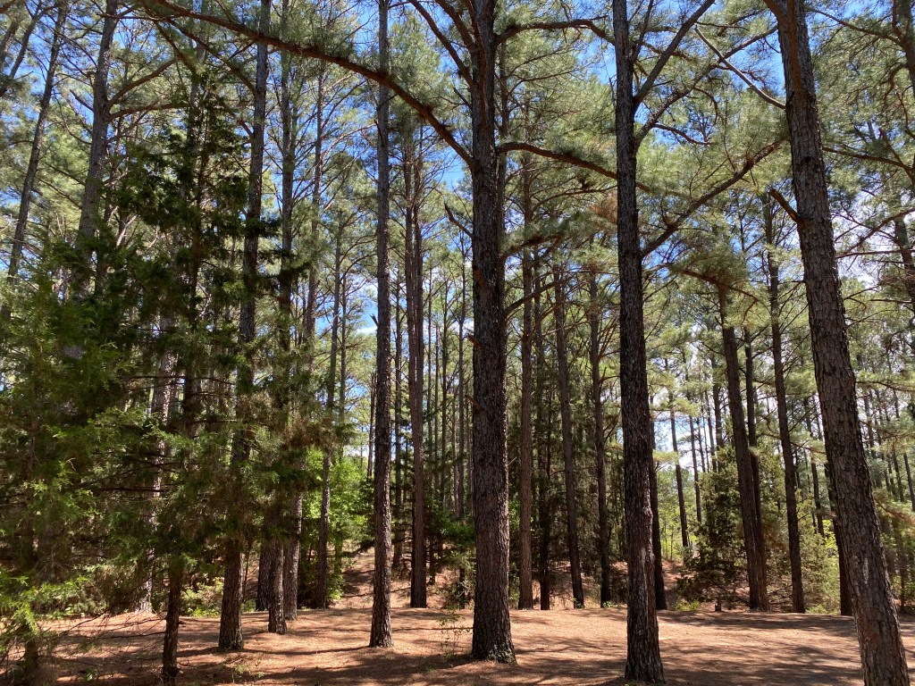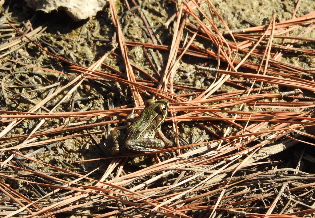 Several others came with me to get acquainted with you and experience some of those gifts. Gale, Cecily and Jim walked under those pine trees and investigated your ponds, reduced to smaller versions of themselves by summer’s drought but still home to so many frogs. As always, they break out of their camouflage and bounce frantically into the water when we come close, only occasionally giving us a glimpse of spotted skin, or pale green shading into a brighter color, or a mud-gray bumpy little cricket frog. These frogs were showing us that you were still full of life, and never more obviously than at your ponds.