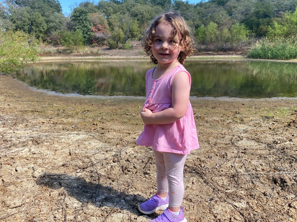 She held my hand at first, but without fear. Today was her third time to visit Sheri Capehart Nature Preserve and I’m sure it’s becoming familiar, with its ponds (where she always asks about turtles), oak woods and sandstone boulders. Lily likes to climb onto boulders and stand taller. Her third birthday is a little over two months away, and there is so much of the world to discover.