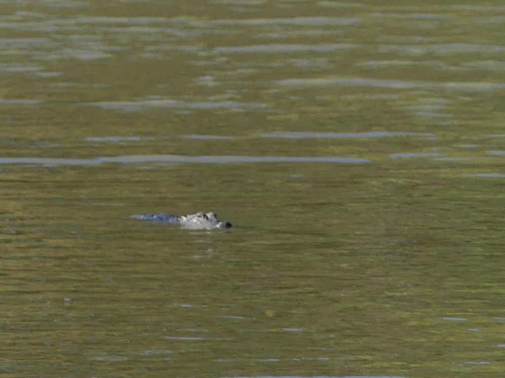 We then headed for Greer Island to look for good herp habitat. While walking down the causeway, members of the group spotted a small American alligator cruising along a few hundred feet out in the water. What a wonderful follow-up to the discussion by Dr. Wood!
