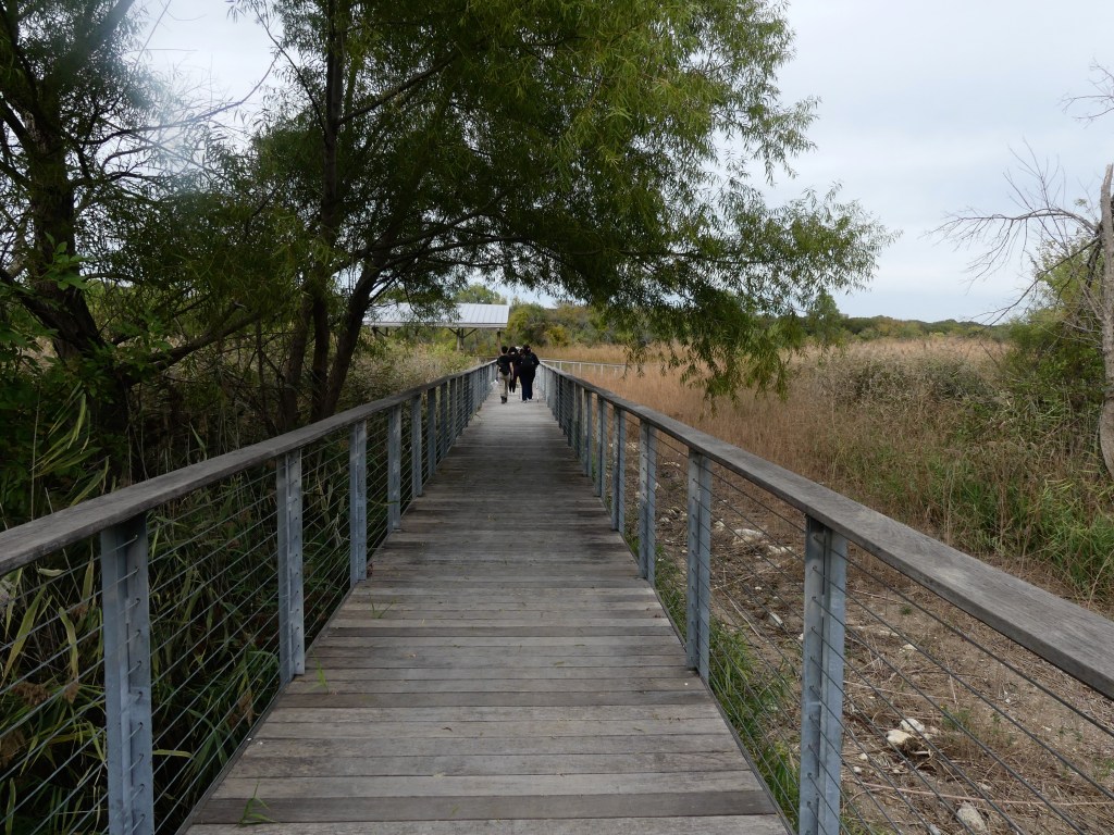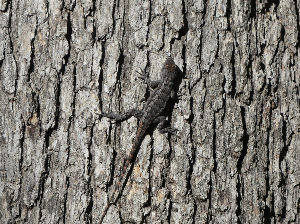 On the island, we wanted to see what we could find without damaging habitat or collecting anything. Our goal was to identify fallen logs that offered good refuge underneath and could be investigated without tearing them up. We also talked about what species would more likely be seen in spots like the water’s edge among tall reeds, or dense mid-story vegetation in the woodland. We did not really expect to see much on a cool October day, but these are very observant folks. We found a little brown skink, a green treefrog sleeping on a reed at the water’s edge, and a Texas spiny lizard before we were done.