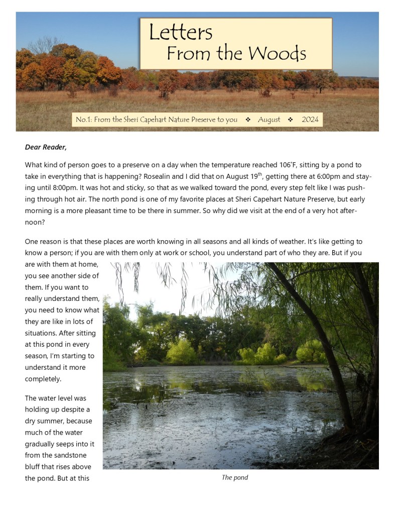 And now I’ve written the first of what might be many “Letters From the Woods,” also downloadable as a pdf document at this website. I can design and format it more flexibly than I could a blog post, and you could easily hang onto it or share it if you wanted. I can post a link to each new one here on the blog, and you could click the link or go to the Letters to You page.