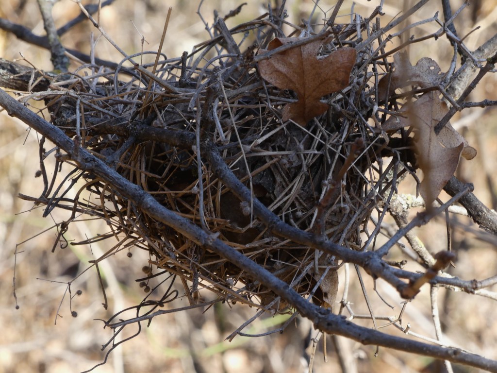 It is always a delight to find a bird’s nest, even the loose arrangement of twigs and grasses I found today. When winter leaves the trees mostly bare, old bird nests are sometimes exposed even very close to the trail. Some time last year this would have been a concealed refuge where eggs could hatch and baby birds grow and, after a while, fledge. I’m drawn to these relics of avian architecture. The birds weave and knit with such skill, and find ways to incorporate so many materials – lichen, moss, hair – so that I’m reminded of woodland faeries. And yet I don’t know why I should go to myths and stories when the birds are miracle enough.