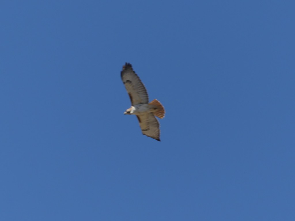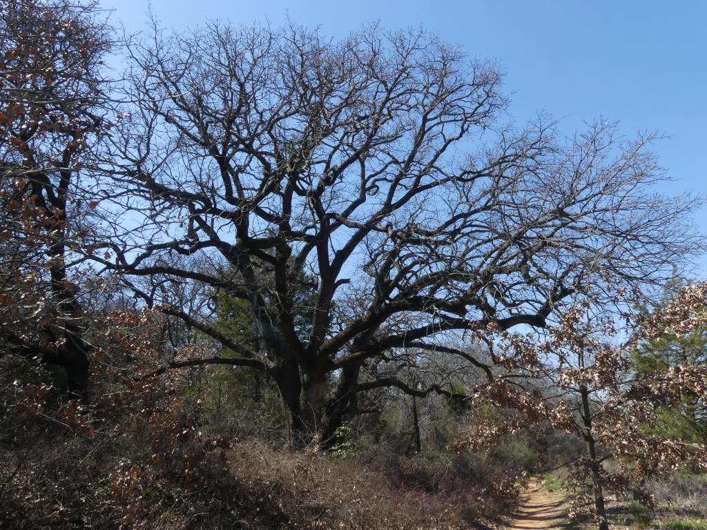 I walk around the preserve, past the historic Caddo oak, seeing many more butterflies and hearing a number of bird species: Carolina wrens, tufted titmice, a chickadee or two, an eastern phoebe, and many northern cardinals. I see a red-tailed hawk overhead, soaring and then turning on powerful wings.