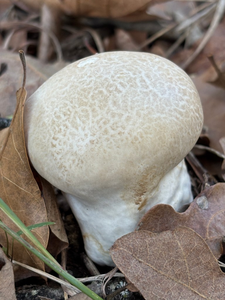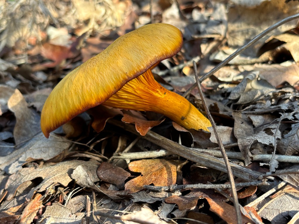 I wanted to follow up on the walk with Logan a few days ago in which we saw southern jack o’ lantern mushrooms. In that particular spot we visited, mushrooms were still there. It might be some particular combination of the right soil, shade, and moisture, but that place stood out with all those mushrooms. There was even a new one of a different sort. According to iNaturalist, it was a type of puffball mushroom. I want to go back to see if it matures to rupture and release a tiny cloud of spores.