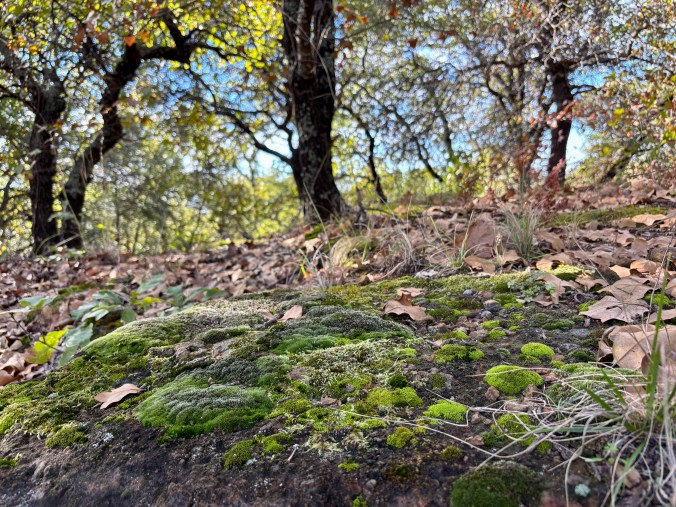 And that includes the mosses. After the way Logan brightened with every new patch of moss he found, I was attuned to them today and really appreciated how they grow on the sandstone up at the bluff. Looking at some boulders was like seeing a miniature topography of meadows and hills.