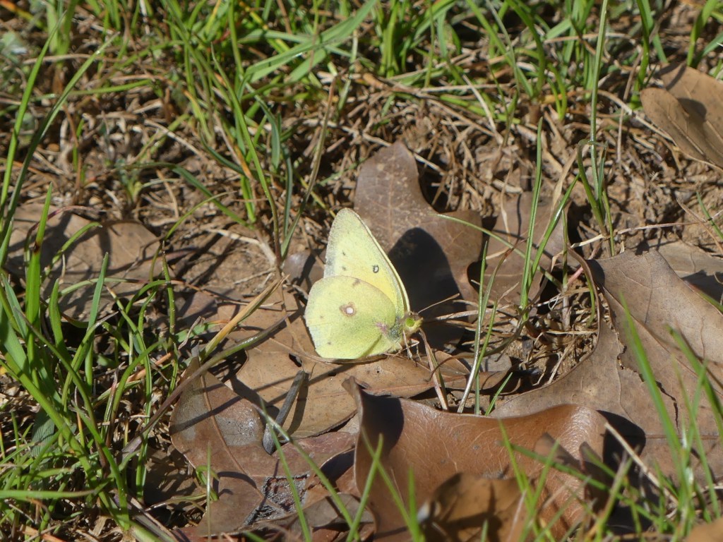 In the middle of the day on February 20th at the preserve, it was 81.1F in the shade, and insects were on the move, including grasshoppers, wasps, and butterflies. As I walked down the trail, a small sulphur butterfly flew ahead of me to a new place to land among the emerging green plants. It found another sulphur and together they rose, circling each other, and flew away above the treetops. Along the boulder trail I could see six or eight of them at any one time. One would encounter another and they would briefly chase each other in a twirling pattern before separating.