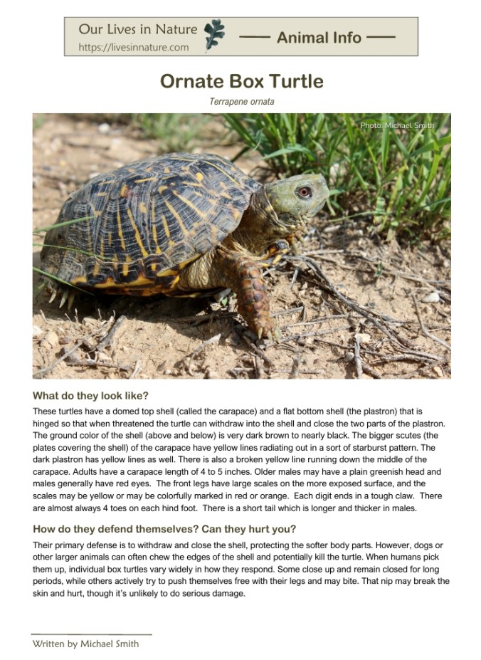 Ornate Box Turtle – a charming species that, like other box turtles in the U.S., is declining.