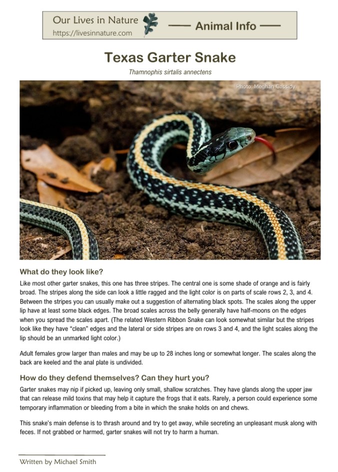 Texas Garter Snake – a garter snake of North and Central Texas that is considered “critically imperiled”.