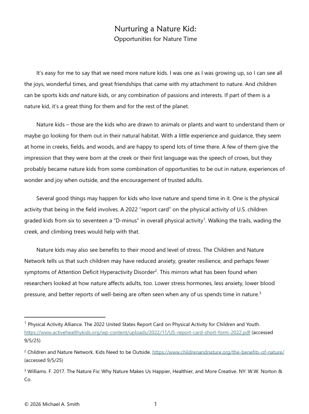 - Nurturing a Nature Kid: Opportunities for Nature Time