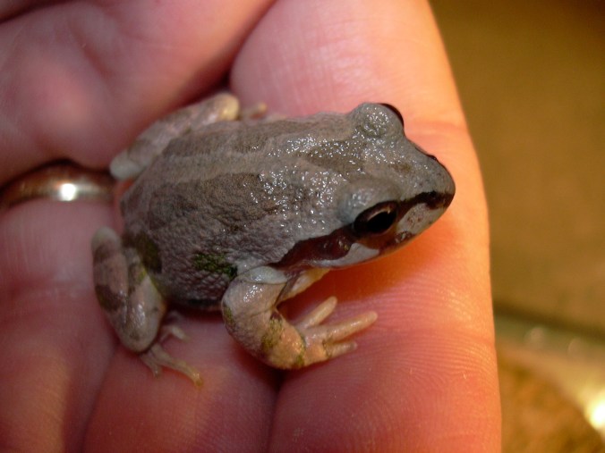 Frogs and toads have a “seat patch” of skin that easily absorbs water and that is how they drink! Many toxins can easily cross an amphibian’s skin, making many of them particularly sensitive to pollution. (Do not handle them if you have chemicals such as insect repellent on your hands.) On the other hand, frogs and toads secrete various toxins from their skin, which helps protect them from infections and in some cases may help protect against predators. Most frogs are completely safe to handle, and none will give you warts! However, do not rub your eyes or get your fingers in your mouth after handling them. The skin secretions of toads can result in a burning sensation if it gets in your eyes.