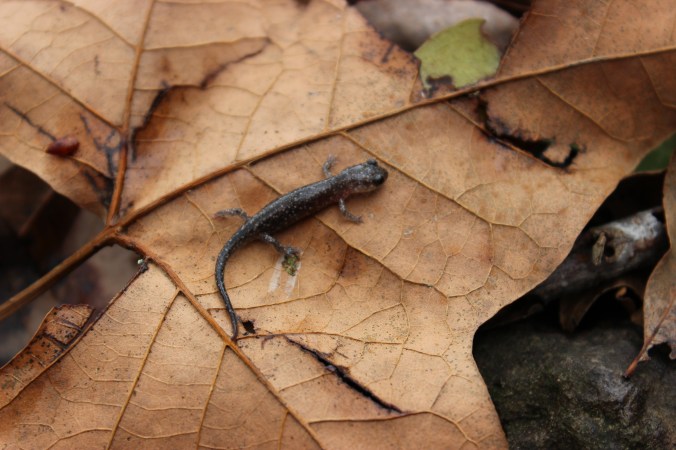 Amphibians include frogs, toads, salamanders, and caecilians. All of them are vertebrates that cannot generate their own body heat – that is, they are “cold blooded” or ectothermic. Amphibians have smooth, slimy, or warty skin which allows them to “drink” through the skin but also makes it easy for them to lose water by evaporation. They lay eggs without shells and almost all species hatch into an aquatic larval stage. One of the exceptions to that rule is the Slimy Salamander, which lays eggs in moist soil and leaves, and embryos develop into miniature adults before hatching. For other species, after growing and developing in ponds and streams, tadpoles and most larval salamanders change from aquatic, gill-breathing animals to animals that breathe air with lungs.