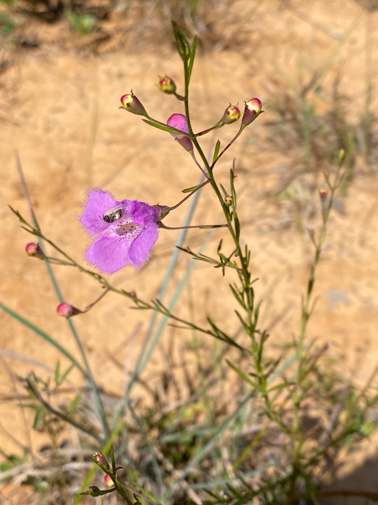 At 6:00pm I had moved to a limestone ridge in Unit 71, with a clear view to the west. Here, the Leavenworth’s Eryngo adds some spikey purple to the landscape, and False Gaura is scattered around with flower clusters looking like popcorn waving in the breeze. During the next hour, the sun was obscured behind some clouds near the horizon and it began to feel like the day was ending. Although there were some distant noises, a pump somewhere, an occasional car or jet, it seemed very quiet. No sounds of birds or insects. In the blue sky to the south, a few wispy clouds were drawn out like a downy feather.